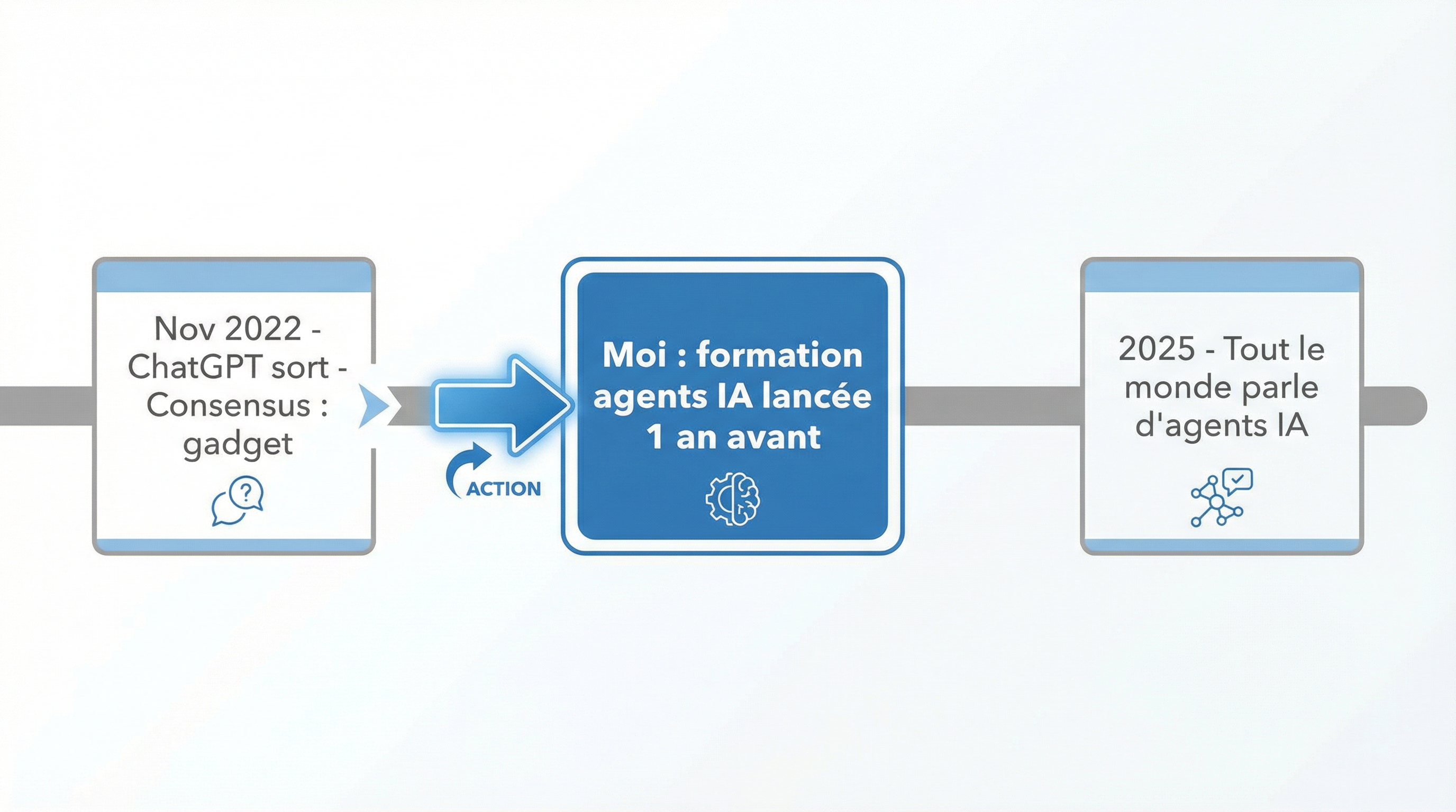 Trois ans plus tard, tout le monde parle d'agents IA. Moi, j'avais créé une formation sur le sujet un an avant.